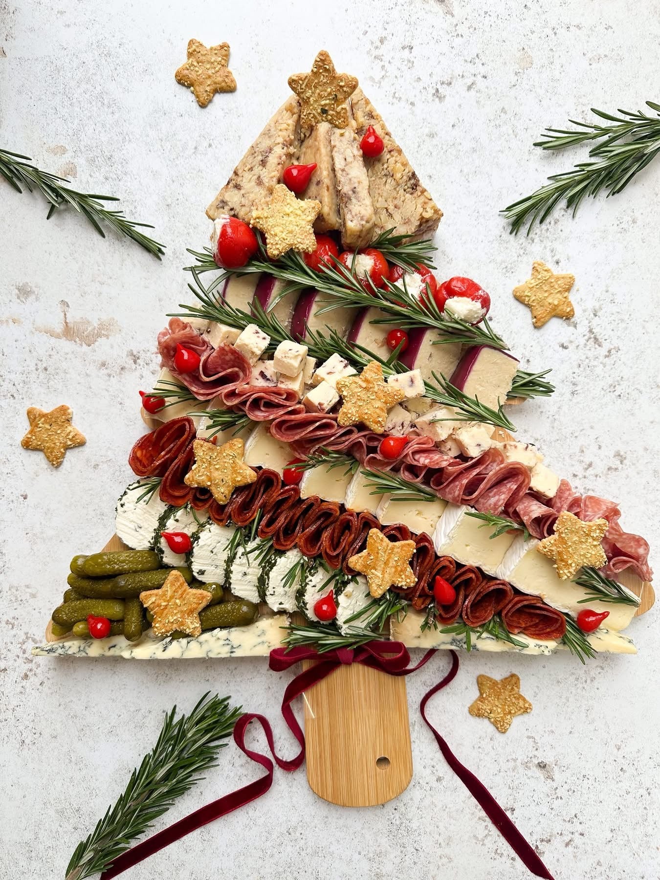 A beautifully curated Christmas tree themed cheese & charcuterie board featuring specially chosen cheeses and charcuterie - a little something for everyone.